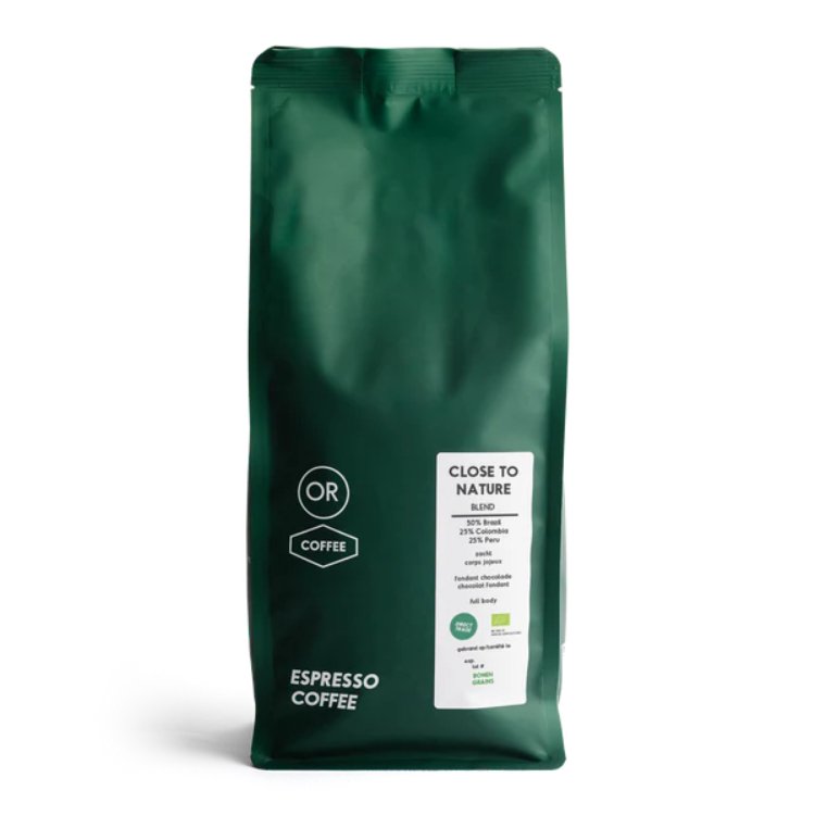 Close To Nature is an organically certified blend for those who value honest, high-quality coffee. This coffee is selected and roasted by OR Coffee Roasters, a Belgian roastery that firmly chooses quality, transparency and sustainable relationships with growers.